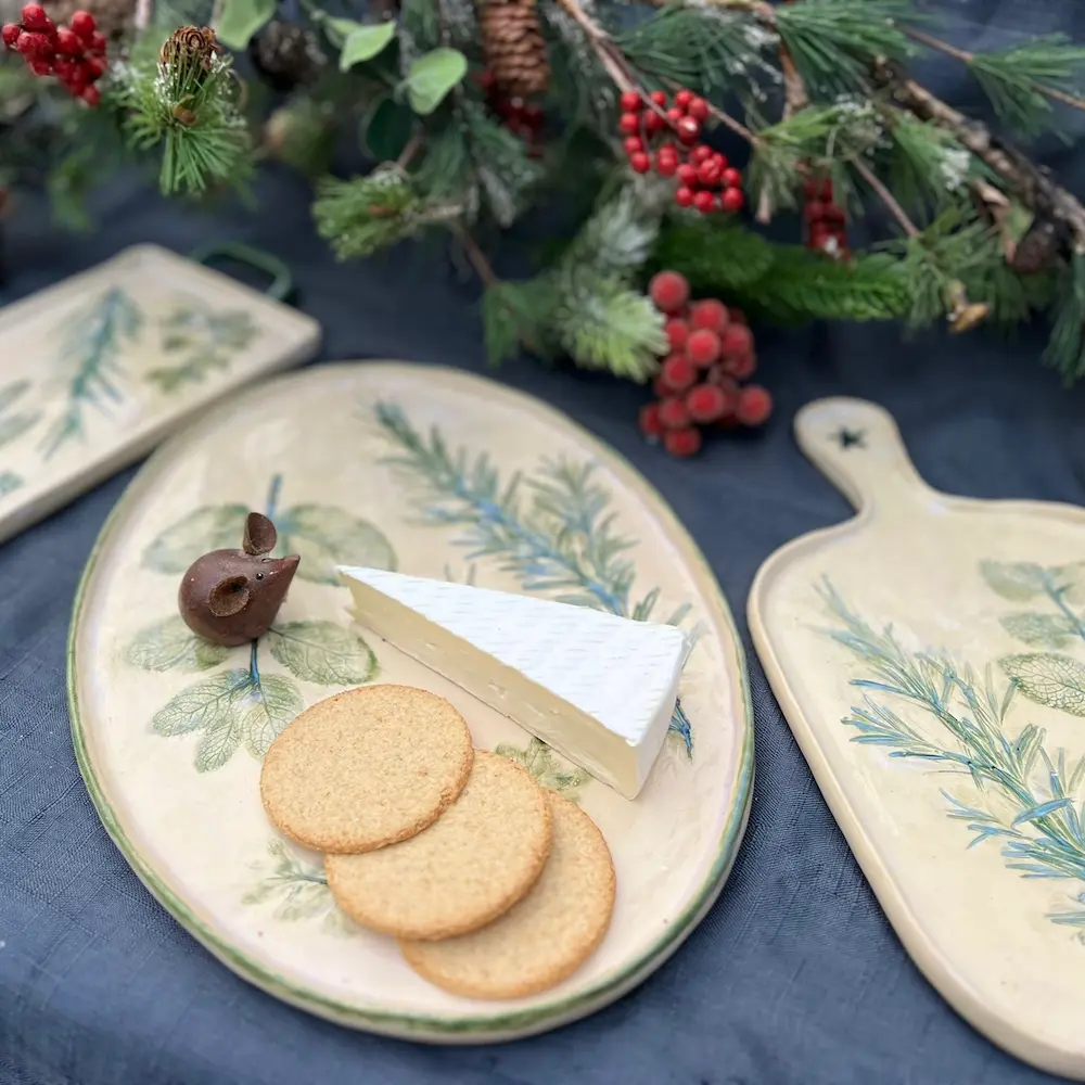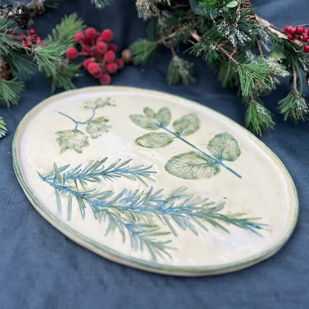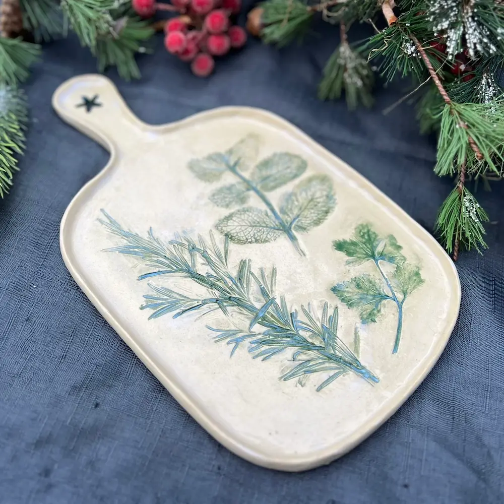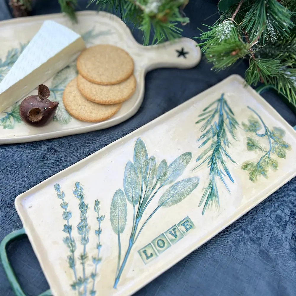 handbuild your own pottery herb platters for Christmas